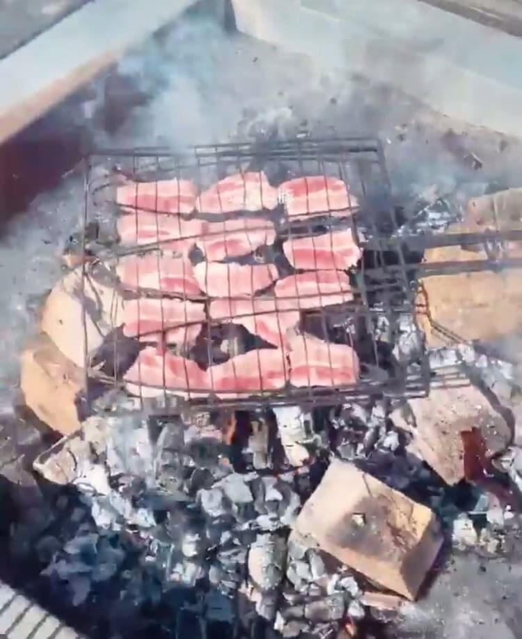 そしてファルモルが火を起こすと、そこでソーセージを焼いたり、塩漬けの豚肉をやいたりして、みんなで軽いランチを食べた。