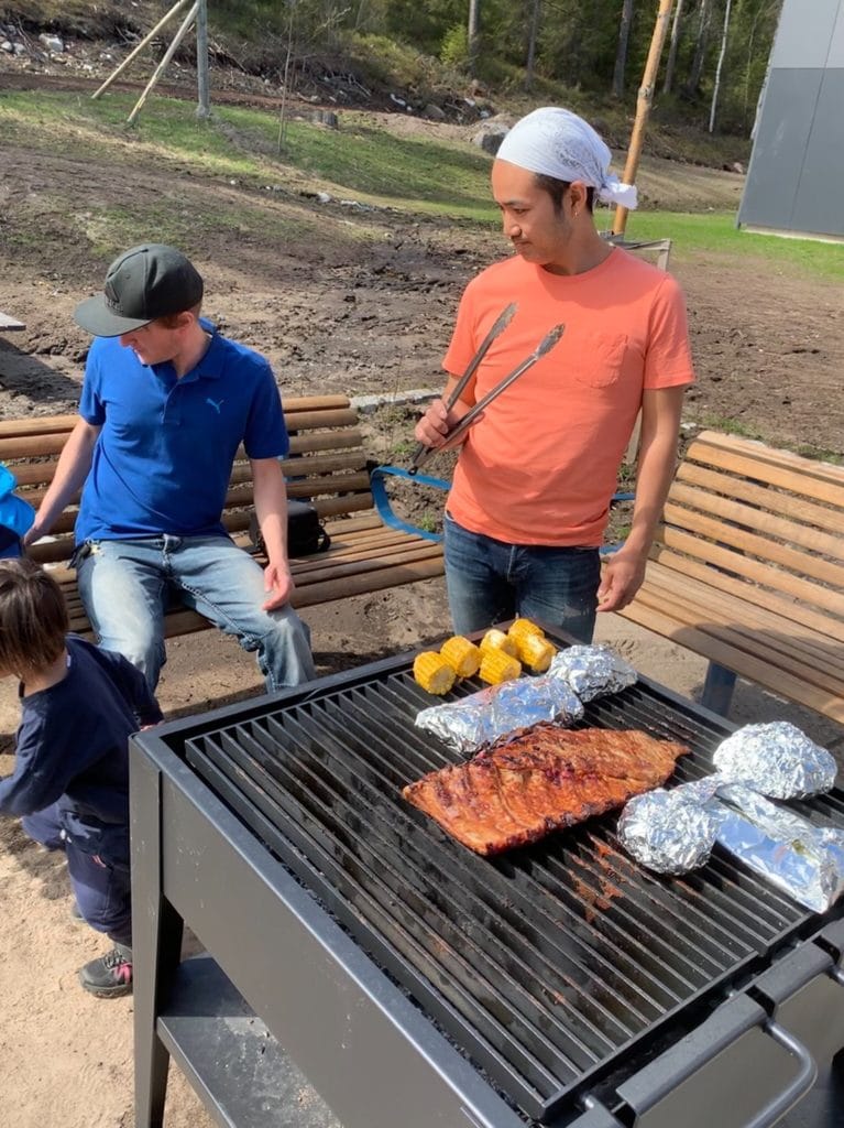 お友達がきて、お茶を一服した後はすぐ裏のグリルプラッツへいって、リカパッパが火を起こしてくれた。そしてパッパたちはコロナビールにライムを突っ込んで、お日様のもと乾杯。うん、うまい。そして「あー。もう夏だねー」と呟いてしまうのだが、気温自体は17度。笑 すっかりきたスウェーデン仕様になってきてしまったのかもしれない。
